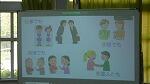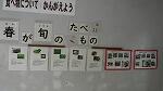 校舎内の階段下り口に「食べ物について考えよう」のタイトルで春に旬の食材(ニラ、アスパラガス、グリーンピース、しらす、たけのこ)が紹介されています。また美味しい給食ができるまでの様子も写真で紹介されています。