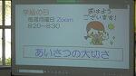 本日8時20分より各教室において、学級の日の時間(Zoom)が行われ、生徒指導担当の先生からお話がありました。本日のテーマは「あいさつ」です。皆で一緒に行っているあいさつを1人でできるようになると、気持ちがよくなったり、うれしくなったり、やる気・元気が出てきたりします。相手を想うあいさつは、お互いの心をつなぎ、楽しい学級・学校生活を送るキーワード、魔法の言葉です。あいさつは学校だけではなく、社会に出ても大人の皆さんが行っており、世界共通で大切なことです。♡あ:明るく温かく ♡い:いつでも誰にでも ♡さ:先に進んで ♡つ:続けて次の言葉を みんなで行動していきましょう。