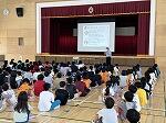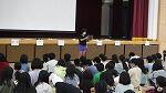 本日の5校時に6年生全児童を対象に久手堅笑美さんによる進路講話が体育館で行われました。