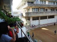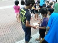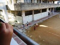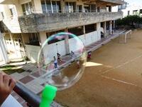 家庭学習がんばろう旬間で優秀ノートに選ばれた児童が、校長室前からシャボン玉とばしをしました。(PTA家庭教育委員会と連携した取組)