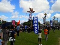 神原中学校の旗のもと、神原小児童はチンク隊として参加しました。練習のときから小中合同で取り組んできました。