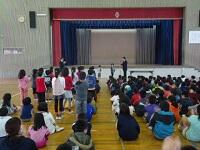 4年生が「世界がひとつになるまで」を歌いました。パートに分かれてきれいなハーモニーを聴かせてくれました。最後は、全校で歌いました。