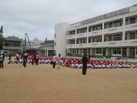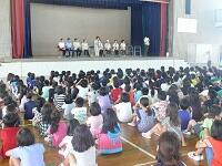 全校朝会で地域の民生委員さん、自治会長さん、交番所長さん、児童館長さんを紹介しました。