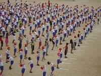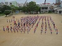 集団行動の確認のあとラジオ体操第一(うちなーぐちバージョン)をしました。