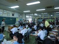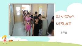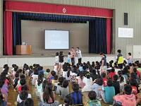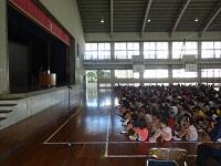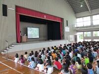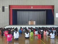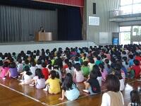平和集会に先立ち、全校で「月桃」を歌いました。その後、図書委員会、各学年による平和宣言に続いて講師の先生より講話をしていただきました。戦争の恐ろしさ、平和の尊さ、みんながなかよくして平和な世の中をつくっていかなければならいないということなどに、全校児童が真剣に耳を傾けていました。