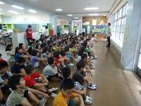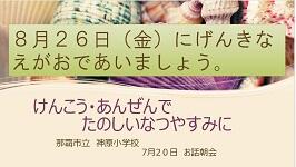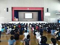 明日から夏休み、安全で充実した夏休みになるよう全校朝会で確認しました。