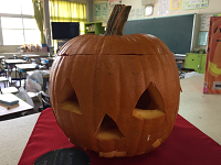校長先生が、かぼちゃのランタンを作って下さいました。