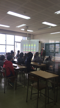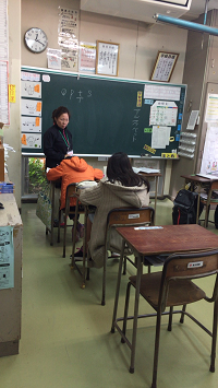 中学校の教室で授業を体験しました。