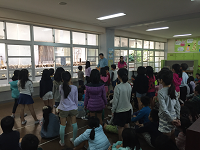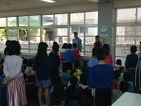 低学年の家庭学習をがんばっているお友達の表彰朝会がありました。