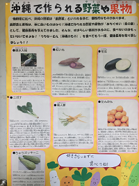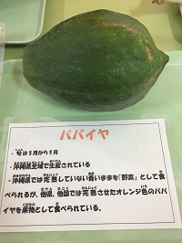 学校でも給食や食への意識を高めるために、沖縄の野菜やくだものの実物展示