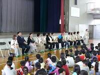 全校朝会にて、地域でお世話になっている民政委員の方の紹介がありました。
