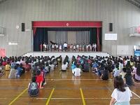 今日で1学期前半終了です。全校朝会では校長先生のお話や音楽コンクールに出場する児童の歌の披露がありました。