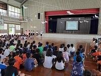 6月21日に体育館で平和集会が行われました。講師の方から対馬丸についてのお話などをしてくださいました。
