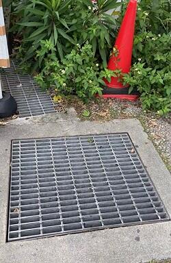 現場へ行き、子猫のかすかな鳴き声を確認。鼻につく汚水の臭いと底には水が溜まっている様子である。那覇市環境保全課へ連絡を入れたところ、「その現場は把握済み。その排水溝で家族で住みついているようなので今は保護していない」との回答。