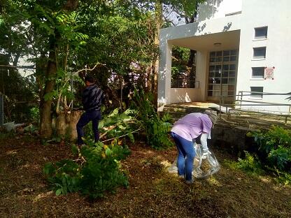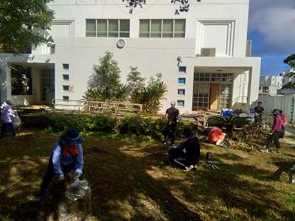 6月14日(日)おやじの会の根間さんの呼びかけで,有志による図書館横の草刈り,剪定等の作業を行いました。暑い中ありがとう御座いました。