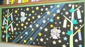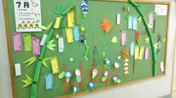 七夕(7月7日)を前に、校舎内は七夕の掲示になっています。階段の中央部分や、ろうかの掲示板は、毎月担当学年を決めて、掲示物が並びます。今月は5年生が担当です。子ども達は、ろうかで足をとめてみています。季節を感じる掲示物っていいですね。