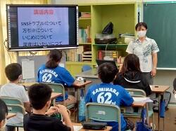 那覇警察署より講師を招聘しSNSや万引き,いじめ等の講話があり短い時間でしたが,真剣なまなざしで聞いてました。