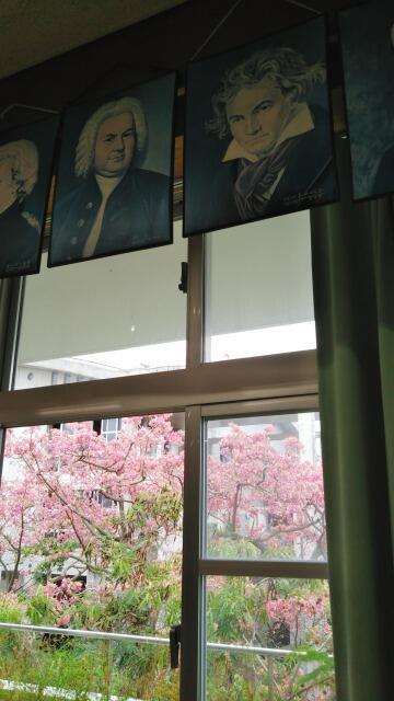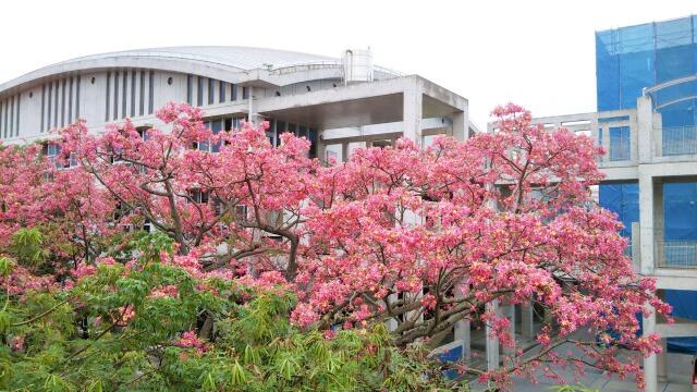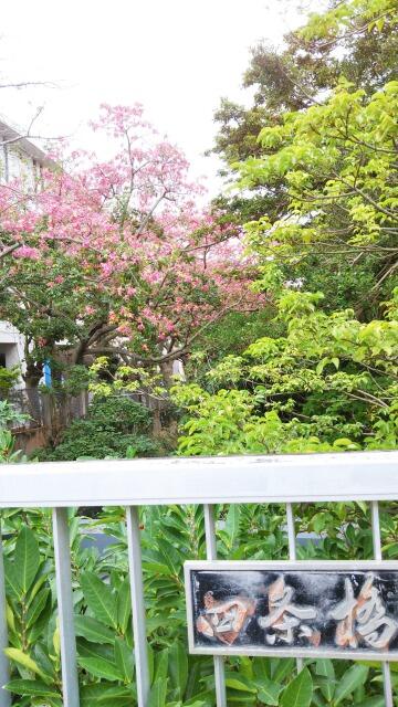 さて、今日は学校周辺の景色です。図書館や音楽室の窓からは、沖縄では有名な「トックリキワタ」が鮮やかなピンク色の花を身にまとってきれいに咲き誇り、見る人を楽しませてくれます。「トックリキワタ」は12月頃にかけて見頃です。鮮やかなピンク色の花、児童の皆さんも、音楽室や図書館に行った際には、見てみて下さいね。