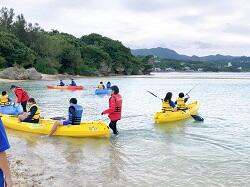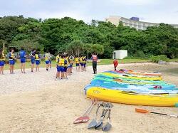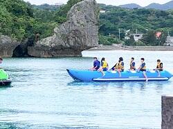 一日目は、海洋博公園、美ら海水族館、ホテルでのステーキランチ、ホテルビーチにてマリンスポーツ体験(グラスボート、ドラゴンボート、シーカヤック、ビーチフラッグ)を行いました。