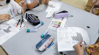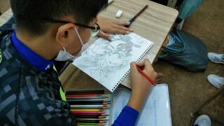 ①外スポーツはドッジボール、⑤手芸・裁縫は布生地を裁断し、裁縫セットから針や糸を使っていました。⑪手話は自己紹介を、⑦パソコンでは画像取り込みをしていました。④バンドでは、実際にドラムやギターに触れていました。⑩ものづくり工作では、竹とんぼ作りや風船割りをしていました。③折り紙では、基本の鶴を折り、⑥漫画・イラストでは、集中して黙々と描き上げていました。