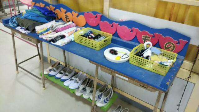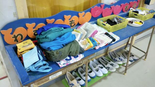 神原小学校の一階正面玄関前にある落とし物コーナーです。今日の朝ふと見ると、普段から生活委員さんが整理してくれていますが、今日はいつも以上に整理整頓されており、気持ちいいですね。