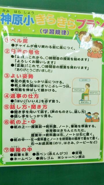 その後、「集中とは、一つのことを考え続けることです。先輩から受け継いだ伝統のきらきらプランに集中して取り組んでいくこと」の話を頂きました。授業を集中して受けられるように考えられたのが、「きらきらプラン」です。