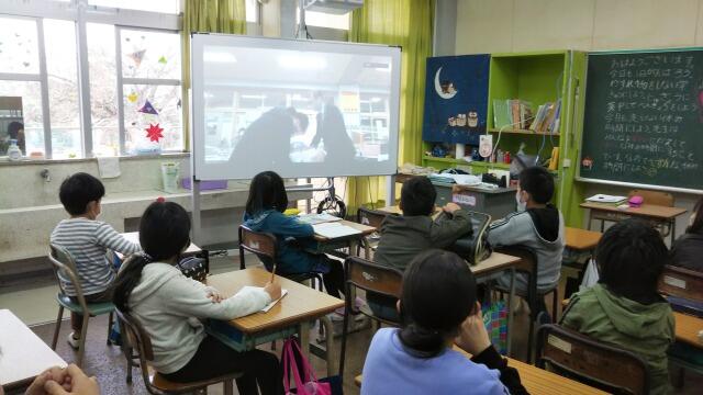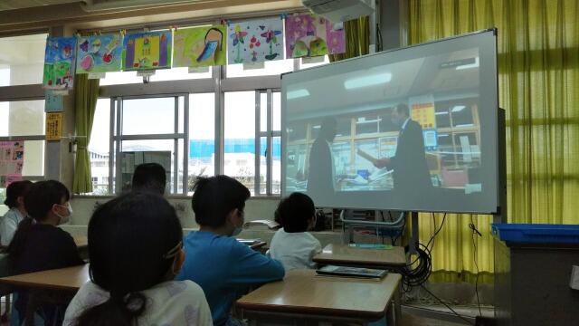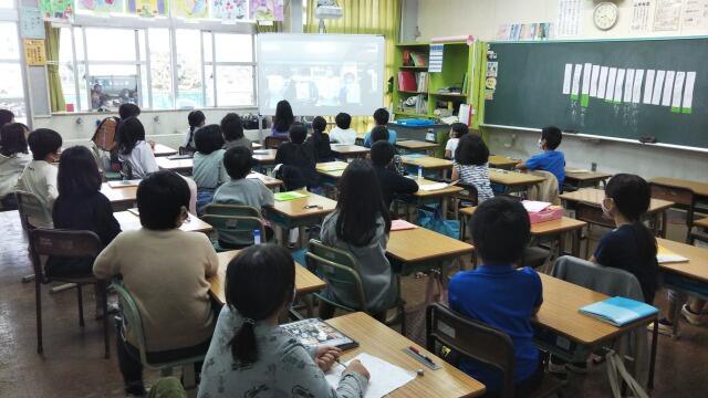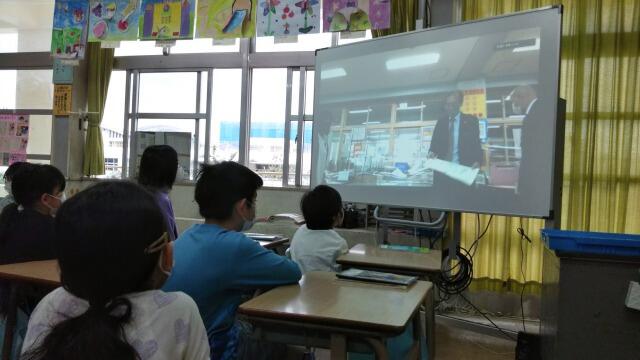 その様子を全児童が電子黒板に映る生中継のzoomの映像を真剣に見ていました。