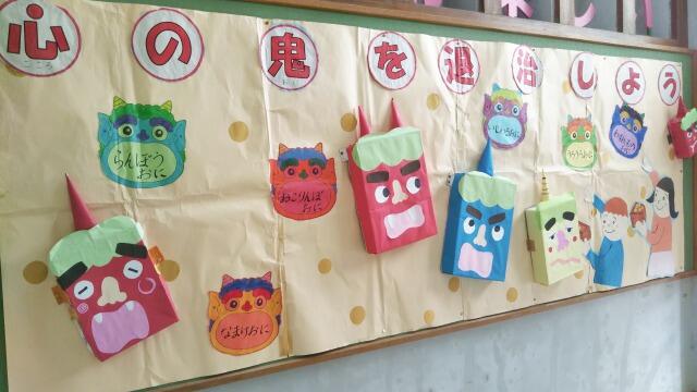 学校掲示(2月)今日は節分!