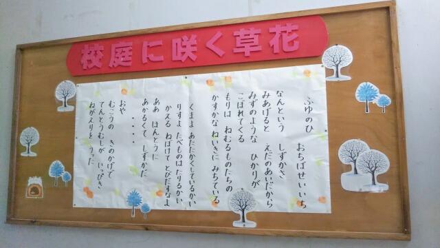 2年生では国語で今月初旬、「詩をつくろう、見たこと、感じたこと」の単元を学習しました。普段の見たこと、感じたことが詩に書かれ、たくさんの詩が掲示されていました。