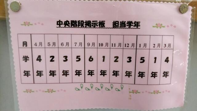 学校の掲示板(中央階段2ヶ所)は各学年で分担して取り組んでいます。