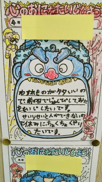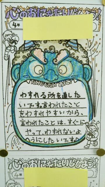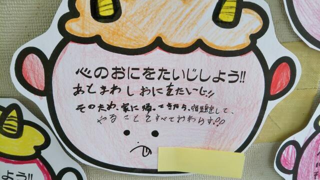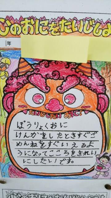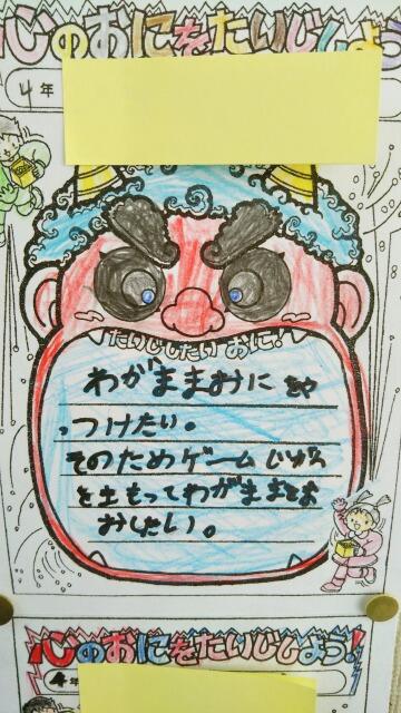 3年生「心のおにをたいじするためにどうするのか」までかかれています。