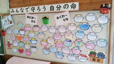 節分を2月2日に迎え、1年、3年、4年生の各学級では「心のおにをやっつけろ!」と題し、