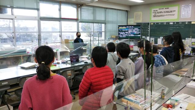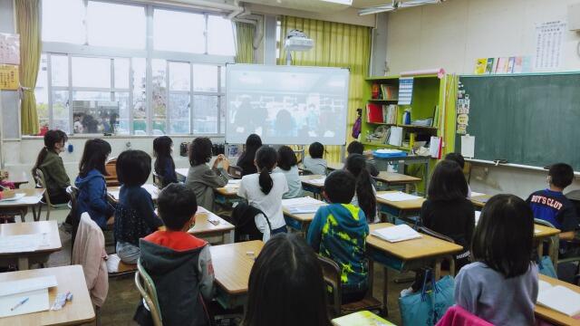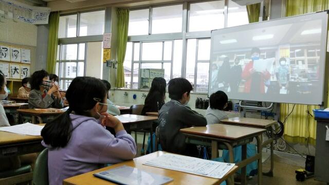 担任が各教室よりZOOMへログインし、大型電子黒板に映して生中継で各委員会委員長任命式を見ることができました。