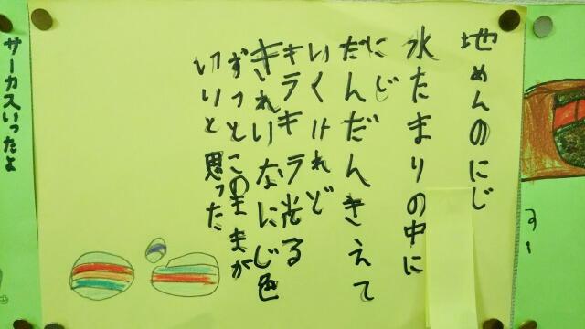 2年生では国語で今月初旬、「詩をつくろう、見たこと、感じたこと」の単元を学習しました。普段の見たこと、感じたことが詩に書かれ、たくさんの詩が掲示されていました。