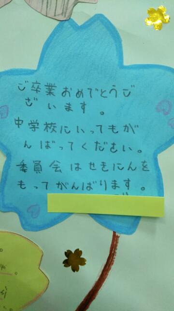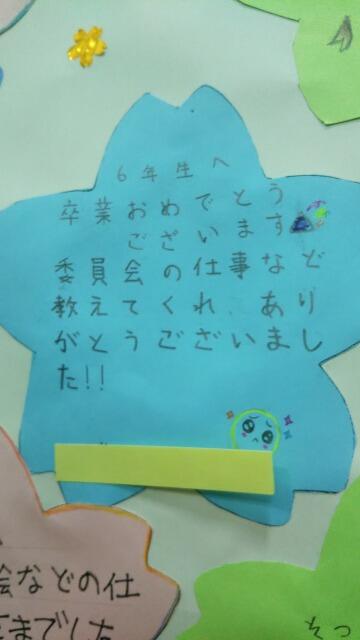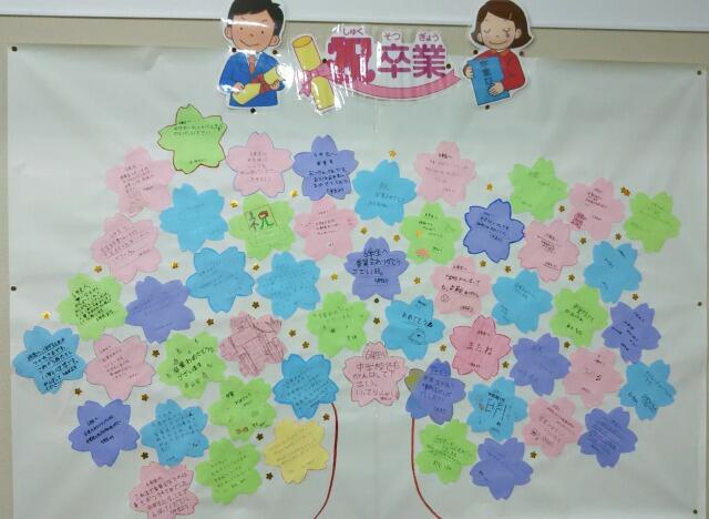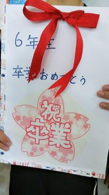 あさって26日(金)に予定されている「卒業を祝う会」へ向けて、校内の掲示も6年生の卒業を祝う雰囲気になりつつあります。