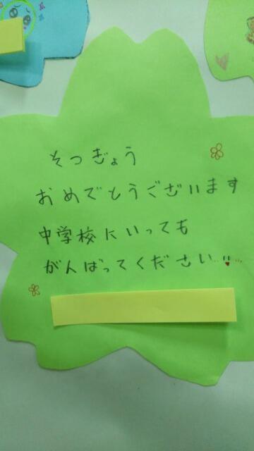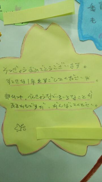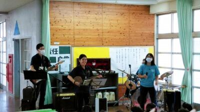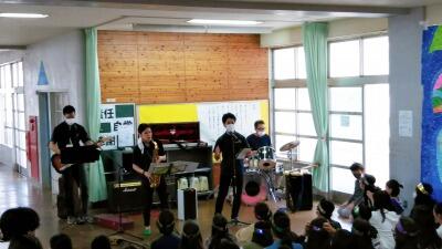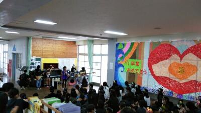 5年生からは「手作り写真立て」、一言メッセージ、バンドクラブよりMONGOL800さんの「小さな恋の歌」が生演奏で披露されました。