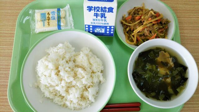 今日の他の献立は、むぎごはん、春雨スープ、青椒肉絲(チンジャオロースー)でした。