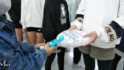 3年生は、6年生一人ひとりへメッセージが書かれた、手作りうちわのプレゼントがありました。