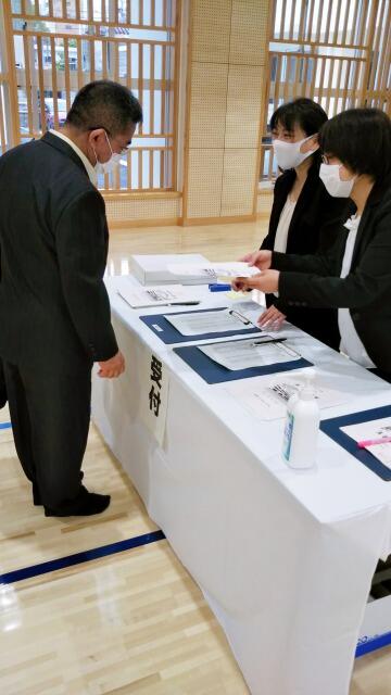 卒業式当日は、コロナ感染症対策として、各ご家庭2名に限定し、体育館への入館時には全員が、検温、消毒、マスクの着用のお願いを致しました。