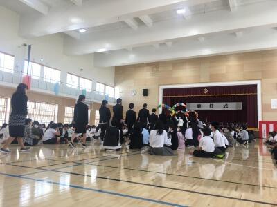 離任式では、今年度で離任される計16名の職員が登壇し、一言挨拶をして頂きました。児童はお世話になった先生方の表情、一言一言を真剣に聞いていました。号泣される先生や寂しさのあまり泣く児童もいて、神原っ子の優しさ、温かさ、素朴さを感じました。