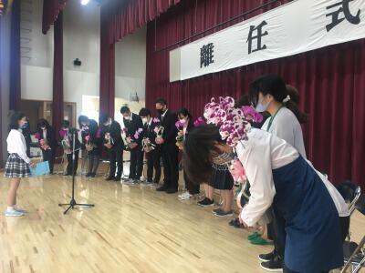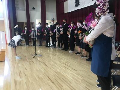 離任式には、昨日卒業した6年生も駆け付け、先生方へ感謝を伝えていました。