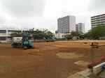先週の土曜日、4月17日の朝から、本校の運動場の整備作業が行われました。体育館新設にともなって工事のために昨年度は運動場の一部が使用できませんでした。今回は使用できなかった箇所の原状回復を行ってくださいました。業者の皆さん、那覇市教育委員会の皆さん、ありがとうございました。