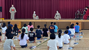 本日5、6校時に「令和3年度 組踊等教育普及事業」組踊ワークショップ(主催・県教育委員会)が、5年生全児童を対象に行われました。組踊は約300年前に玉城朝薫(たまぐすくちょうくん)によって作られた歌舞劇であり、復帰と共に国の重要無形文化財に指定された沖縄の伝統芸能のひとつです。