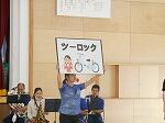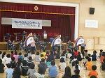 本日、体育館において、沖縄県警察音楽隊の皆さんをお招きして「ちゅらさんコンサート~ミュージックパトロール~」を開催しました。密を避けるため、2時間目に1~3年生、3時間目に4~6年生の児童の皆さんが交代で鑑賞しました。児童の皆さんの好きな曲「となりのトトロ」「さんぽ」の他、今流行のアニメの主題歌「紅蓮華」や「炎」等もおりまぜながら「自転車の乗り方」で注意することを表現されていました。また、本校の音楽の先生も楽隊に飛び入り参加して演奏を行いました。