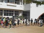 本日5時間目に地震と津波を想定した避難訓練が行われました。地震の場面では、緊迫感のある自動放送の後、各自の机の下に身を隠して守り、その後に教頭先生の放送で避難を開始しました。津波の到達時間や規模を考えながら迅速に第一次避難場所となる運動場、また垂直避難として第二次避難場所の校舎3階への避難等を行い、その後にオンラインで校長先生からのお話を聞きました。命の守るためにすぐに身を守る行動をすること、児童の皆さん、職員一同強く感じました。