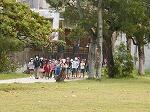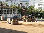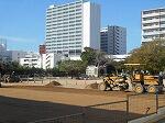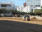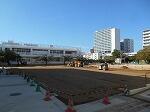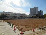 本日は運動場の整備作業の様子をお伝えします。業者の皆さんが朝から重機を使い、先週に搬入した運動場用の土を整地してくださっています。業者の皆さん、また那覇市教育委員会の皆様、ありがとうございます。