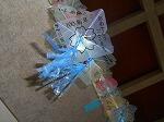 セロファンで花の形に型どったメッセージカードにメッセージを書いて吊り下げられた「ぬちばな」、とてもきれいです。