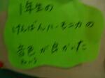 今週19日に行われました音楽発表会後に3・4・5・6学年の児童の皆さんにアンケートを行い、その結果を「他学年のここがすばらしかった!」として校内に掲示しました。ここにご紹介しました意見の他にもいろいろな意見が寄せられました。アンケートに答えてくれた皆さん、ありがとうございました!