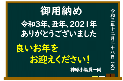 また、今年も保護者の皆様、地域の皆様にはたくさんのご協力をいただきました。本当にありがとうございました。よい年末年始をお迎えください。