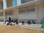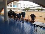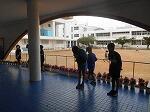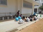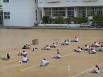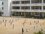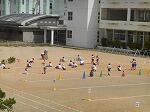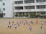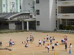 運動場では朝の涼しい時間、楽しくボールを使った運動をしていました。